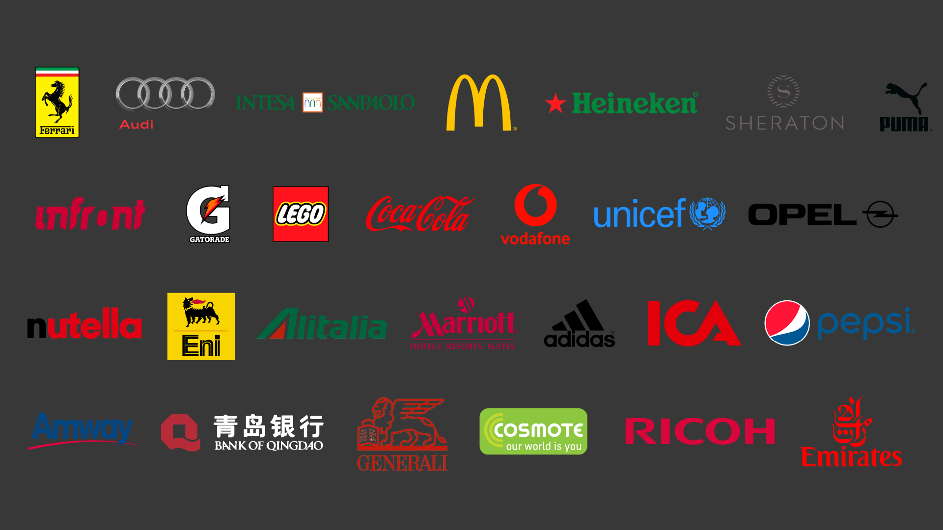 Get StartedWe engaged following celebrities for football international activities: Zvonimir Boban, Paolo Maldini, Andrey Shevchenko, Franco Baresi, Daniele Massaro, Paolo Rossi, Salvatore Schillaci, Carlo Ancelotti, Zlatan Ibraimovic, Ronaldinho, David Beckham, Roberto Baggio, Gianluca Zambrotta, Filippo Inzaghi, Alessandro Del Piero, Aldair, Paolo Di Canio, Simone Perotta, Dejan Savicevic and more